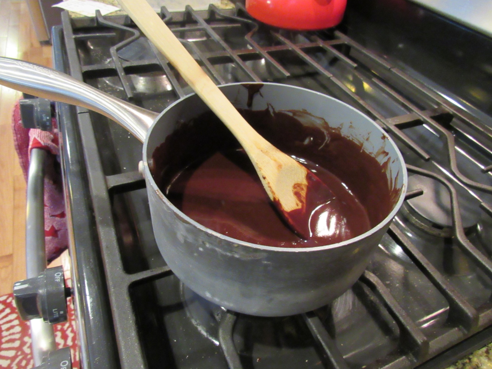 - Melt the chocolate and the butter in a saucepan over low heat, stirring constantly