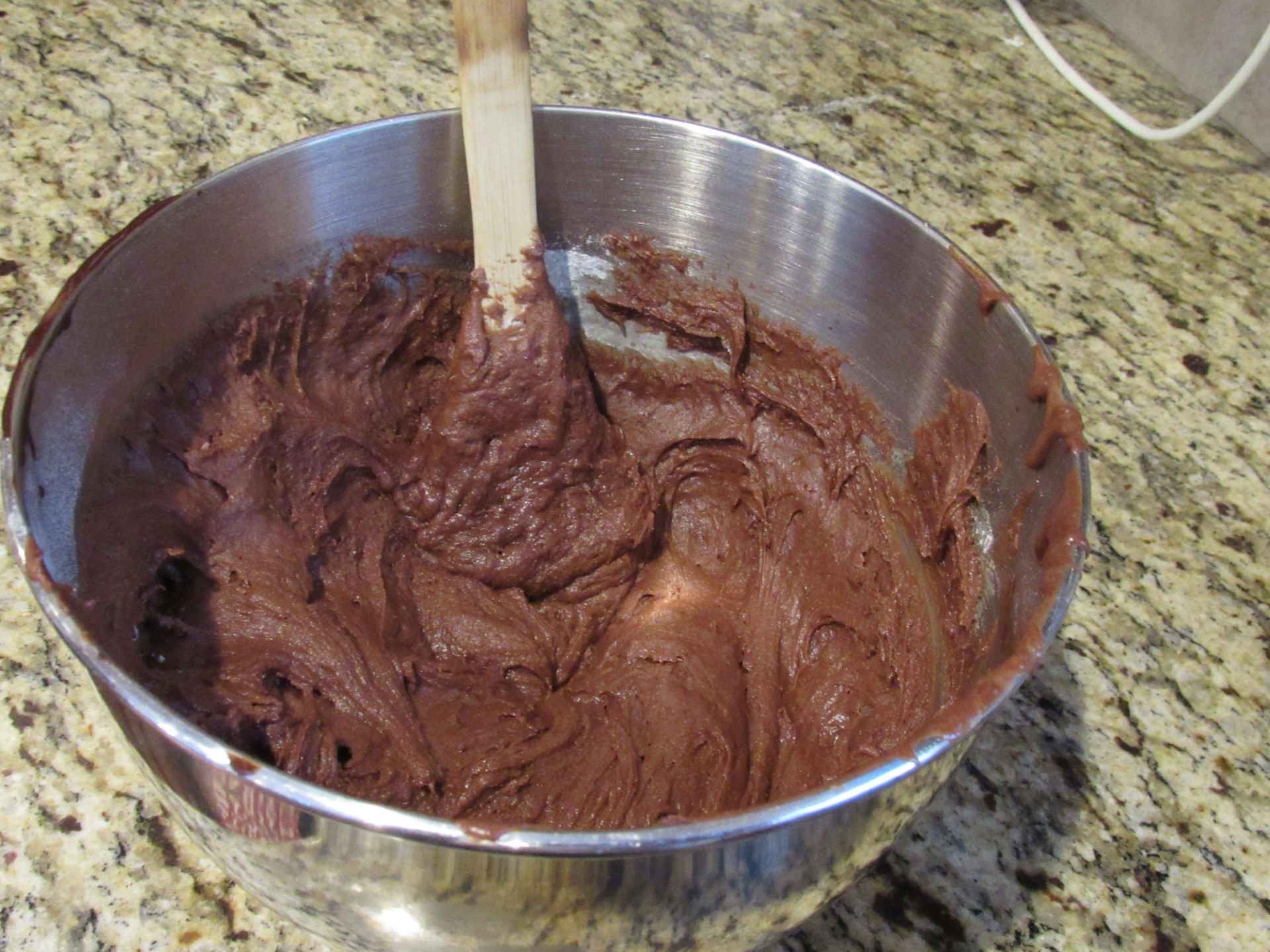 - Fold in the cooled chocolate mixture by hand
